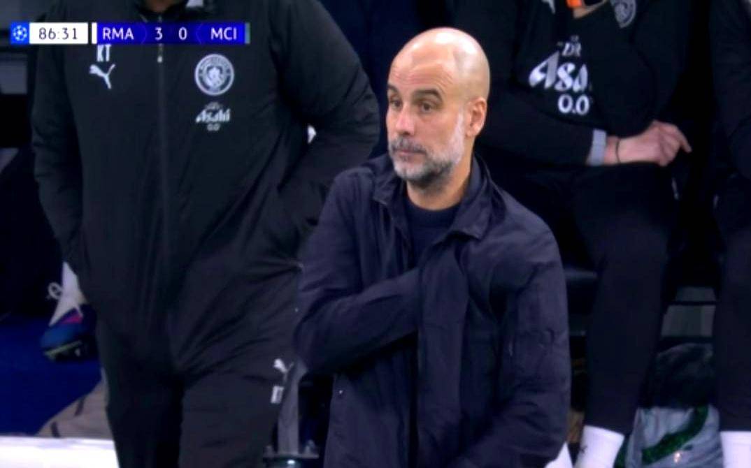 瓜迪奥拉坐在场边的表情,像极了那种明明算好了所有细节但最后还是出错的老师。